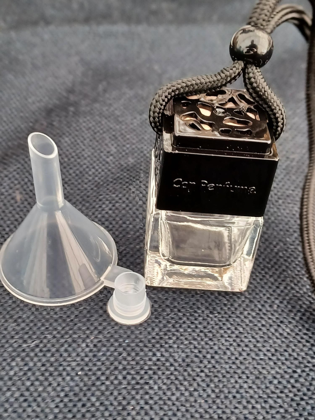 5 x silver and 5 x black 8ml Empty Car Diffuser Glass Bottles complete with rubber stopper and funnel.