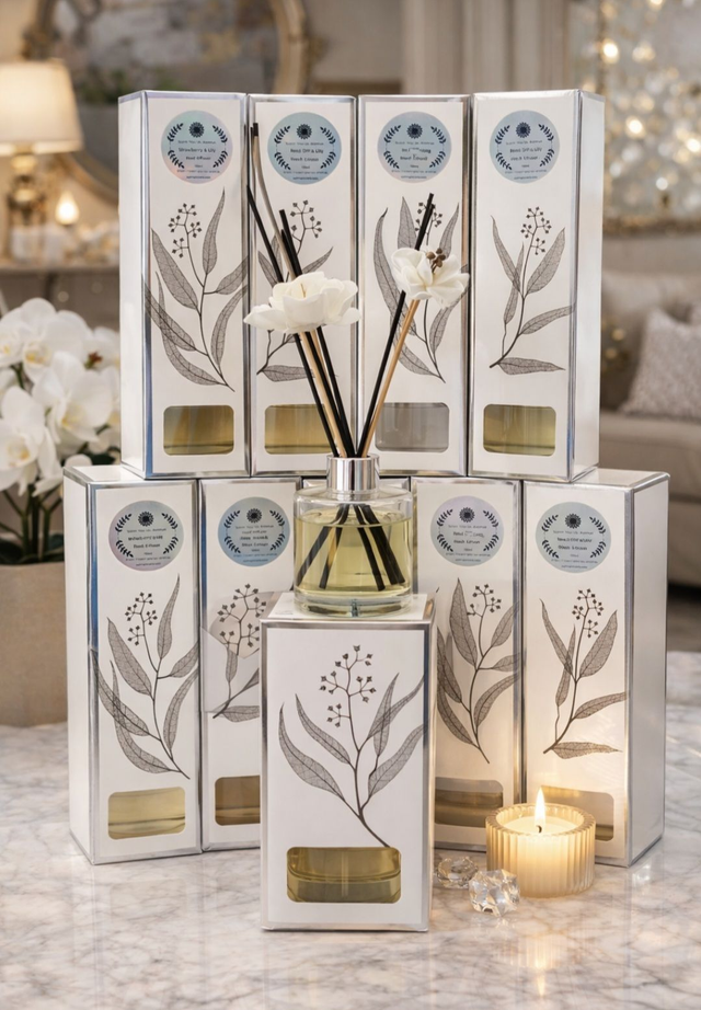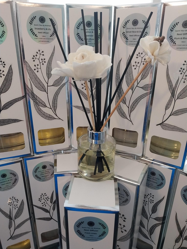 100ml reed diffuser complete with two reed flowers (style may vary) and seven reed diffuser sticks.
